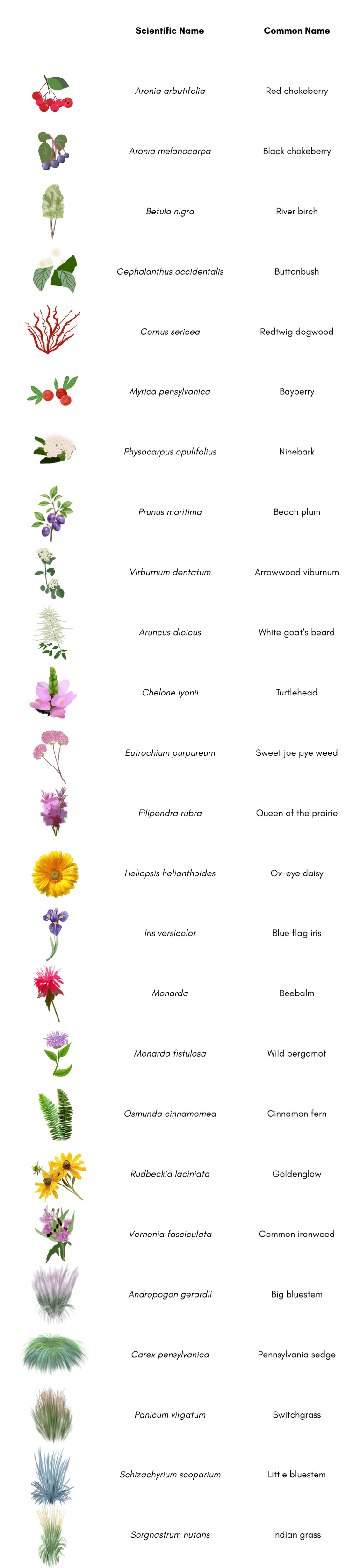 Using the planting plans for the site, we created a map of the 25 species planted at the site.