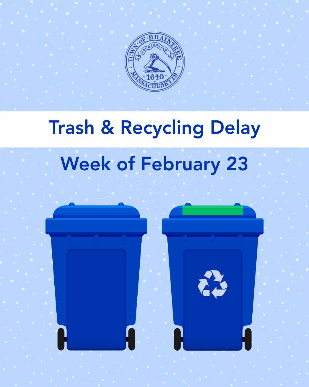 Trash/recycling collection is delayed one day this entire week. There may be instances that trucks cannot maneuver due to snow or parked vehicles impeding full access. If your trash/recycling is not collected or you just could not find a spot for your carts, put extra bags out next week on your regular collection day, and we’ll do our best to clear up this week’s mishaps
